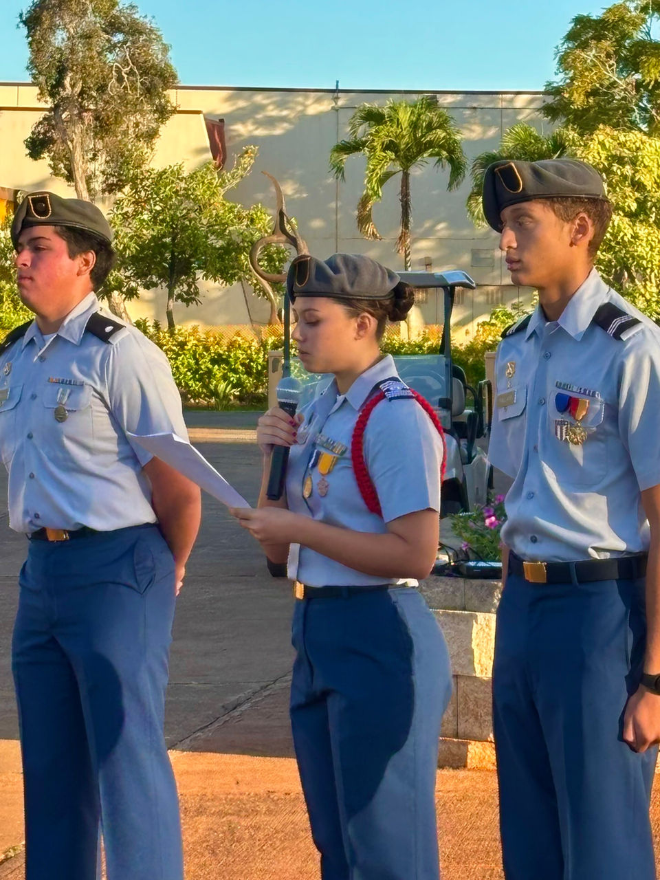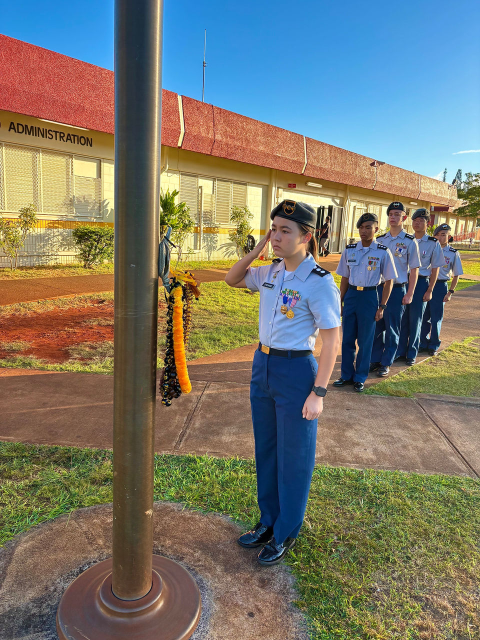 As each cadet placed a lei, they rendered a solemn salute, paying respect to the fallen and reflecting on the courage, sacrifice, and enduring spirit of heroes past and present.